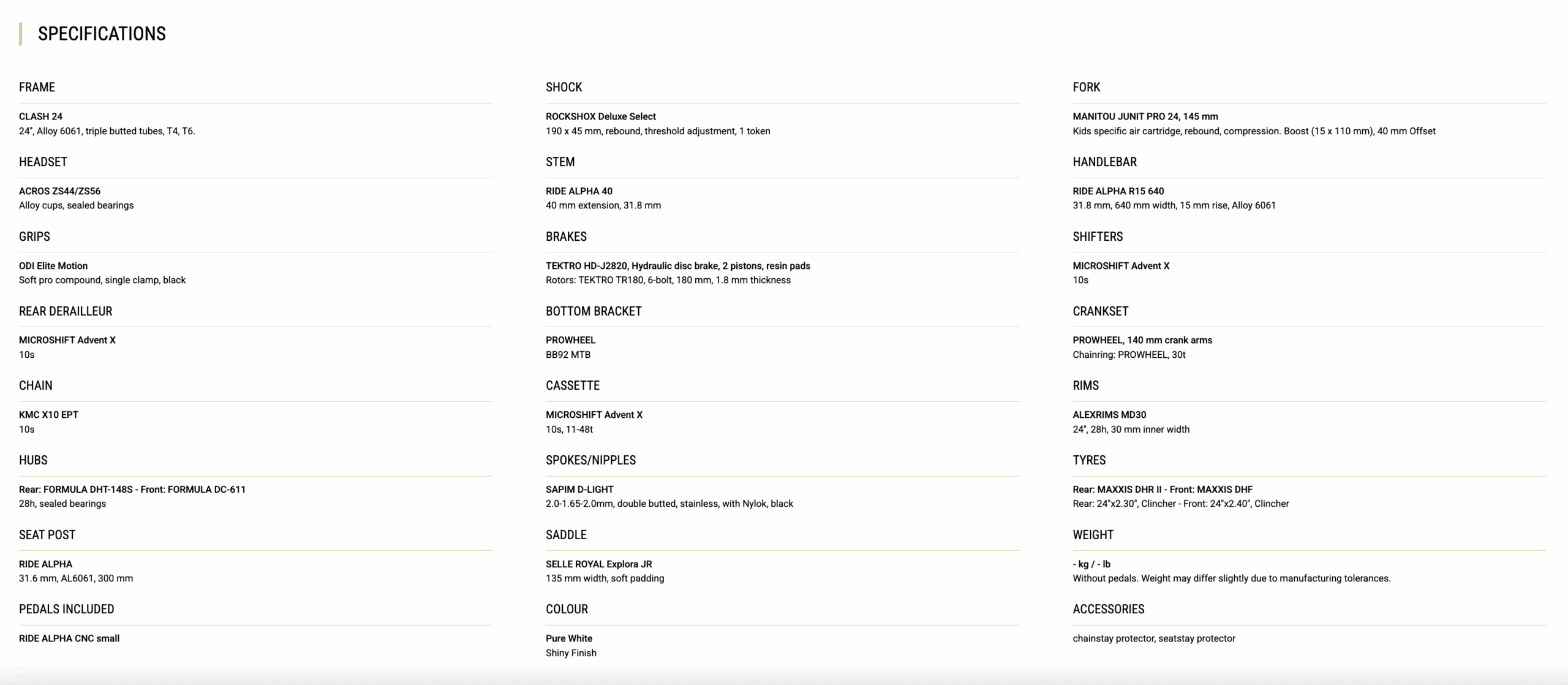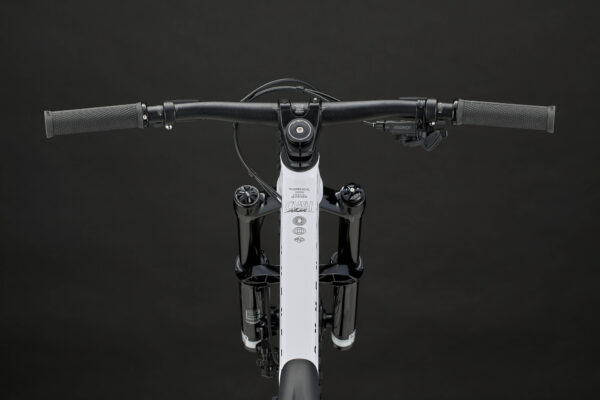 • The MANITOU Machete Junit Pro fork, developed in collaboration with the American brand, offers maximum comfort for young riders. The RockShox Deluxe Select shock has simple yet effective adjustments. Its pneumatic spring can be tuned precisely to the rider’s weight.