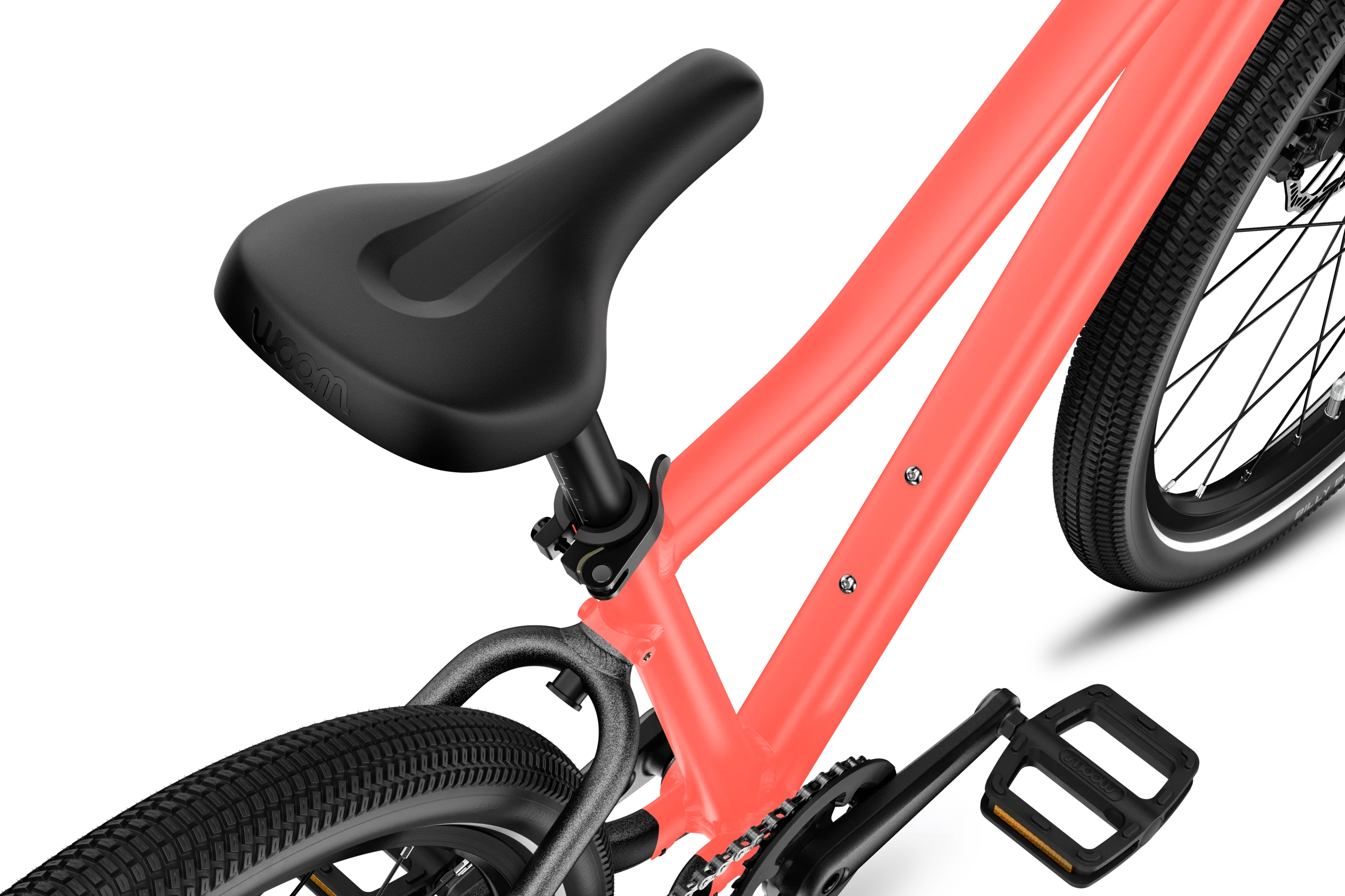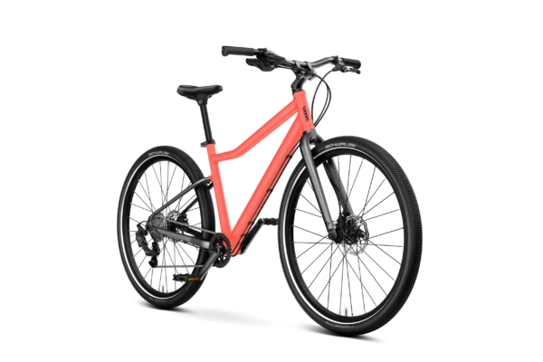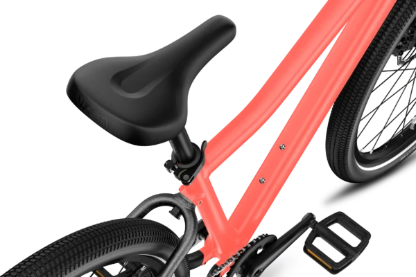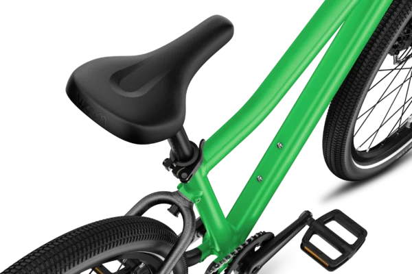 Child-specific, sporty geometry with a slight kink in the top tube and angular tube profile for a comfy ride and standout style.